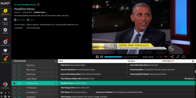 Pluto TV’s service offers over 100 free live channels and on-demand programming. Today, it has partnerships with TV networks, movies studios, publishers, and digital media companies. And it has been rapidly making new deals for content in recent months.