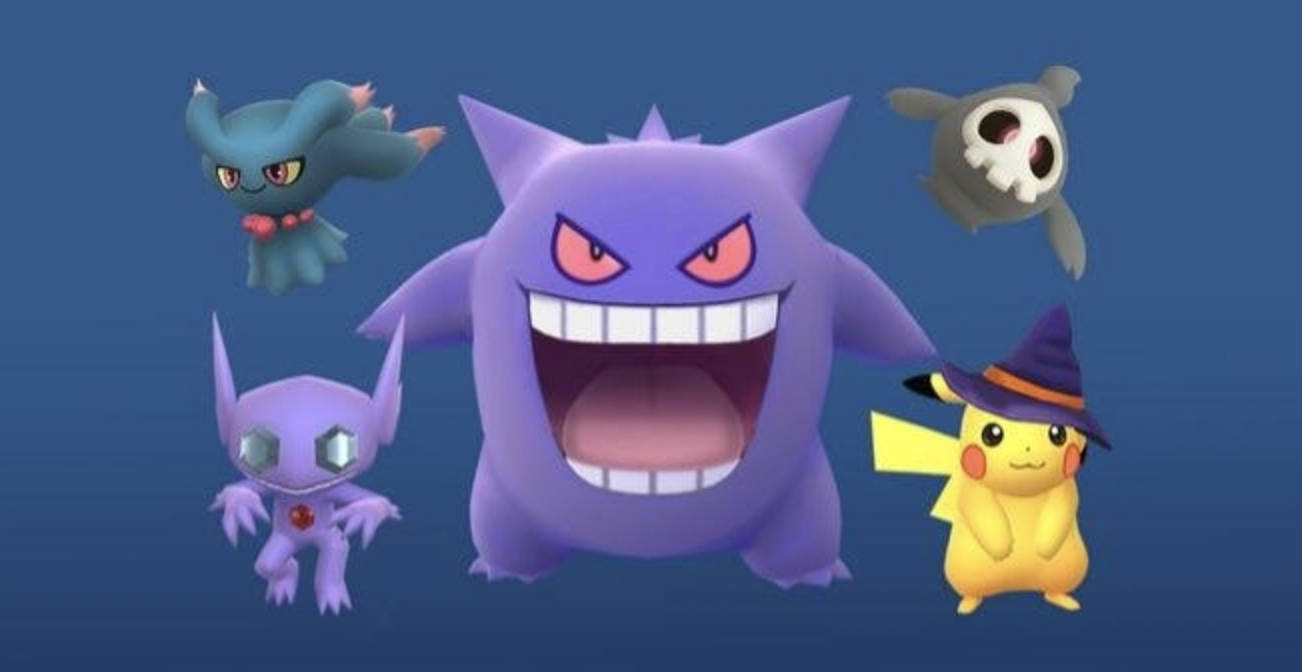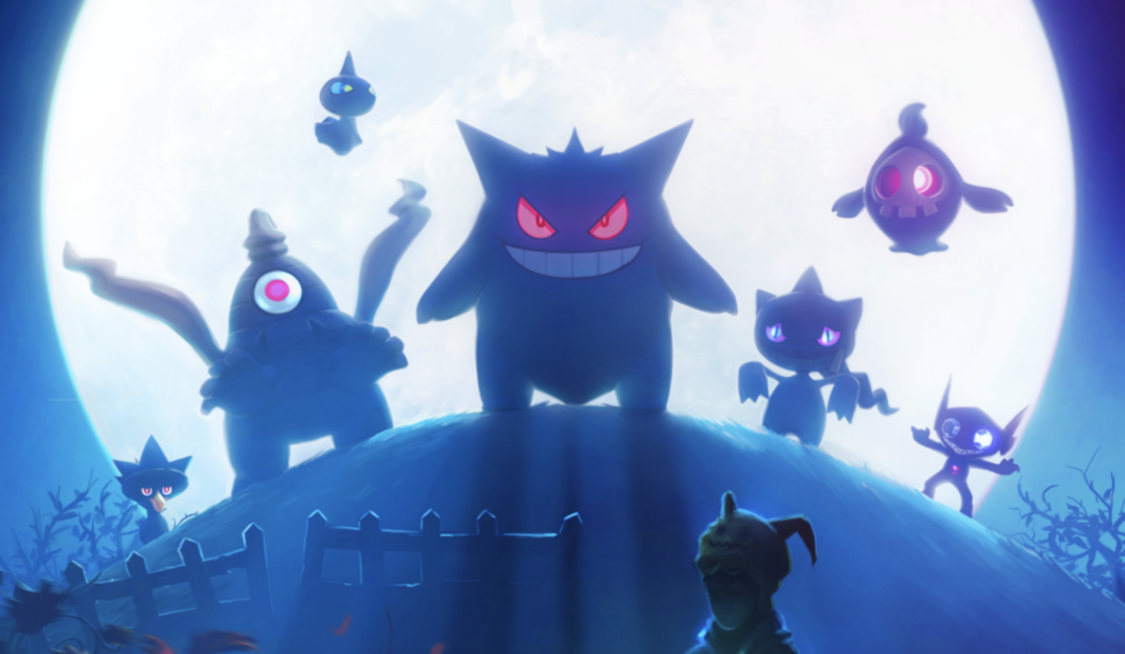 It features Sableye (bottom left) and Duskull (upper right) — both Gen 3 Pokémon, neither of which are currently in the game. Oh, and there’s a Pikachu in a witch hat (the aforementioned Halloween variant, perhaps?) thrown in for good measure.