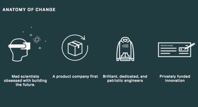 As one source who has spoken with the company’s founders told TechCrunch, Luckey’s vision seems focused on applying augmented reality to defense. Given the sophistication of even the mass-produced consumer-grade virtual reality headsets that Luckey pioneered, it’s easy to imagine how affordable AR and VR could be standard issue in a near-future for the U.S. military.
