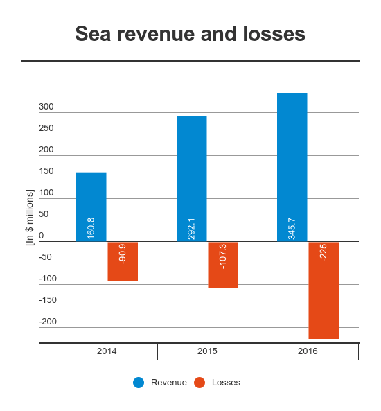 It has grown its revenue from $160.8 million in 2014 to $345.7 million in 2016, but losses during the period widened from $90.9 million to $225 million.