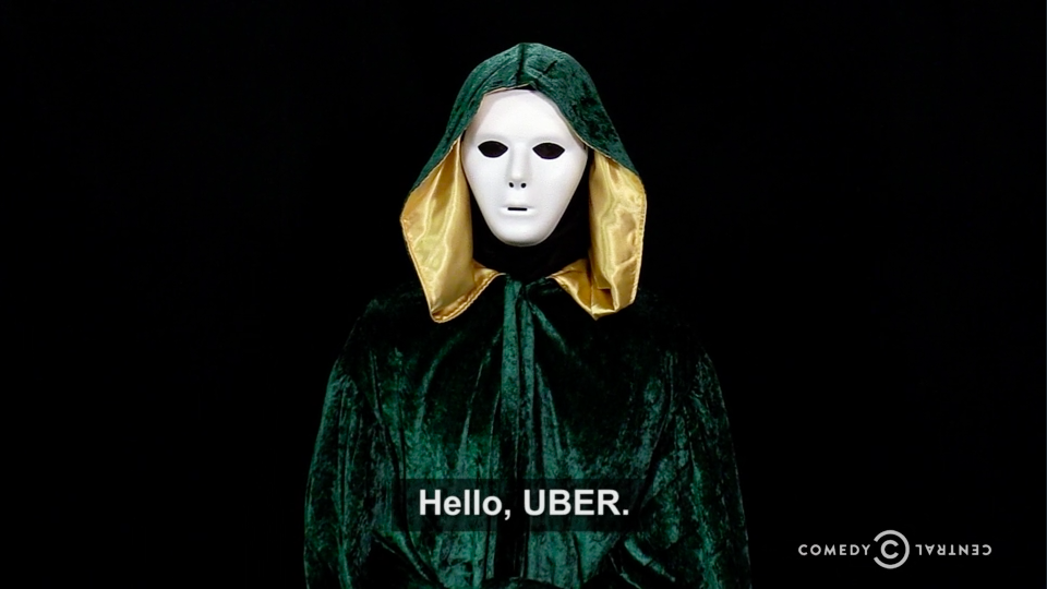 The Comedy Central show opens with an idea to undermine Uber by infiltrating it with a “sleeper cell” of rogue cab drivers, “unleashing total chaos across the globe.”