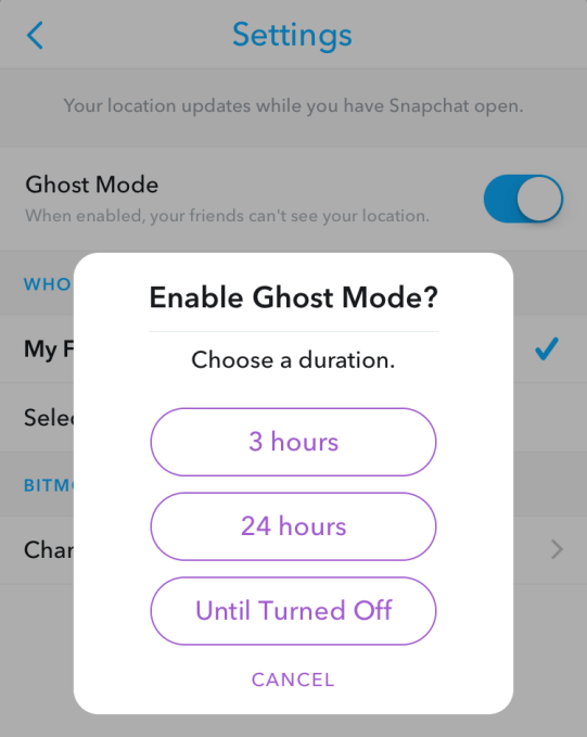 Temporary Ghost Mode could make sure that if users want to turn off their location briefly, they don’t forget and leave it off permanently. This feature is crucial because Snapchat already hides Snap Map behind the camera, making it accessible with a pinch motion some users might not even know about. It’s easy to forget whether your location sharing is on or off. Now if they’re going somewhere sensitive like a secret party or a romantic partner’s place, they can drop into Ghost Mode and automatically reappear later.