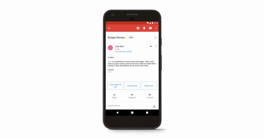 What’s nice is that these add-ons also work in the mobile Gmail app on Android. As for iOS support, a Google spokesperson tells me the company is “working with Apple to bring Gmail Add-ons to iOS users.” It’s unclear when exactly this will happen, though.