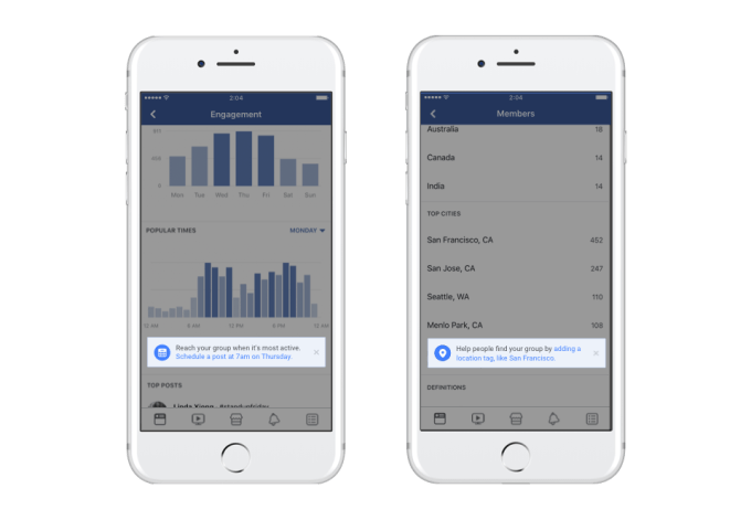 Facebook is also introducing new tools and controls for groups, including a Group Insights tool that offers tips like when to schedule posts based on historical member engagement data.