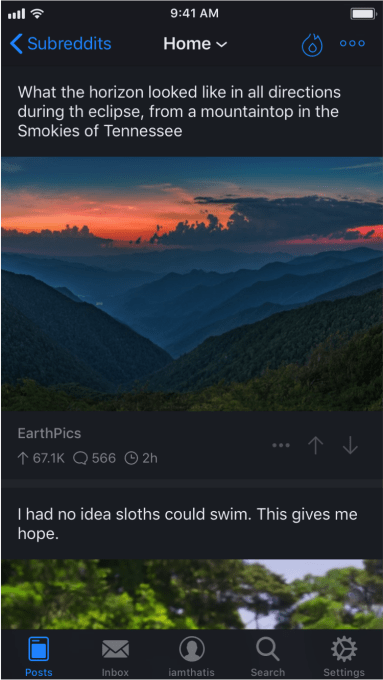 The first thing you’ll notice about Apollo is its look-and-feel, which does feel more in line with Apple’s design than some of the other Reddit clients on the market today. It’s a beautiful, clean and modern app, and is easy to navigate.