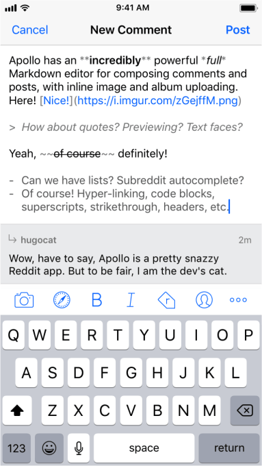 Apollo is a free download, but an in-app purchase of $2.99 will unlock extra features, including the ability to submit posts using the Markdown editor (free users can submit comments with the editor), the Automatic Dark Mode, the ability to customize your gestures, change the app icon and more.