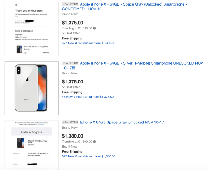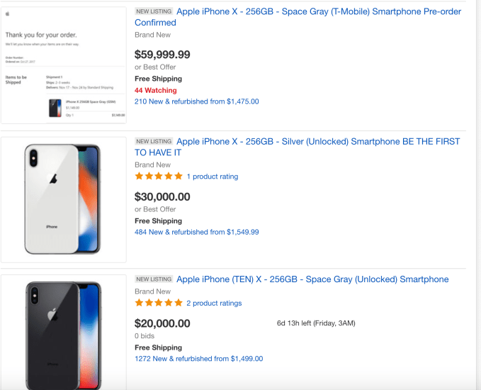 And let’s not forget that some people have posted their iPhone X pre-order confirmations for sale at prices that can only be chalked up to “wishful thinking” — like tens of thousands of dollars or more.