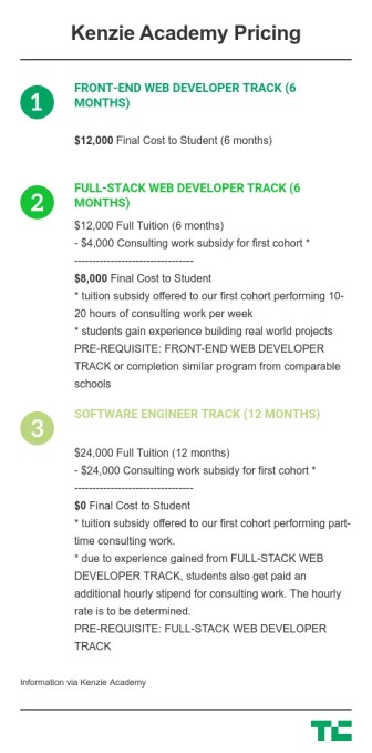 That’s where the academy structure is beneficial because it brings in revenue that is split between the student and Kenzie. The team hopes that the potential to earn a salary for 18 months will make the course viable for more students than say an MBA. There will also be the potential for scholarships and an interest-free loan further down the line, the company said.