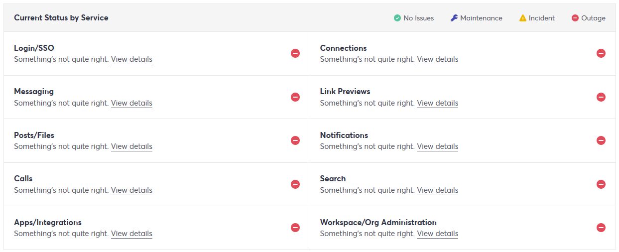 Slack has been down for just over an hour, according to its official status page — which itself was down when I first checked a few minutes after the widely-used productivity tool bit it for us. At this point the end of the workday is pretty much shot, so you can go home. I would but I work from home so I have to sit here.