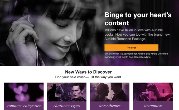 The feature is part of a new package of books under the Audible Romance brand, which is being sold as an add-on to an Audible membership for $6.95 per month, or as a standalone service for $14.95 per month. The package includes access to thousands of romance audiobooks, including best sellers and Audible Originals. There’s no limit on how many you can “read” monthly, either, as with Audible’s main subscription.