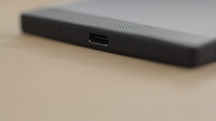 In what seems to be an unstoppable trend at this point, there’s no 3.5mm jack here. The company tells me they needed that space for the battery and the speakers. On the upside, there’s a THX certified 3.5mm to USB-C DAC adapter in the box.