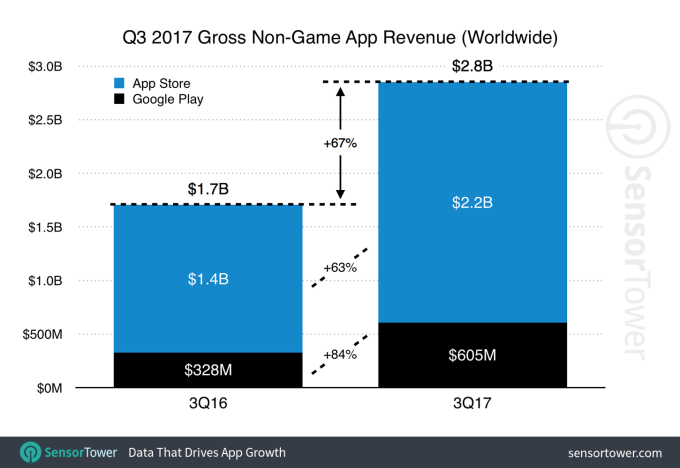 App Annie had also previously reported record app revenue globally. Its total, which includes games, was nearly $17 billion.