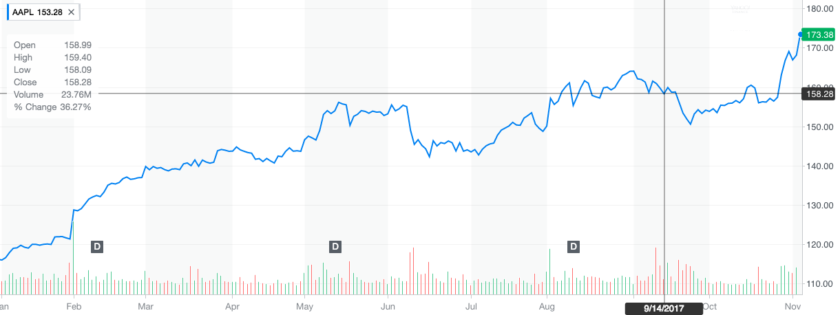 Apple has been having a great run on the stock market in 2017.