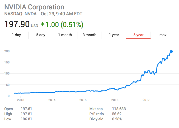 Nvidia was founded in 1993 with the goal of making better graphics cards for gamers. By its twentieth anniversary, it had attained a comfortable corporate middle age with a valuation in the single-digit billions. Then AI folks began to rely on Nvidia’s hardware, and the company enjoyed a 10X improvement in their stock price in the space of two years. What was once a company that served a niche segment of the tech industry is now a major player — Nvidia’s market cap is twice as large as Tesla’s! It may be the end of the startup world as we’ve known it, but students of business history should feel fine.