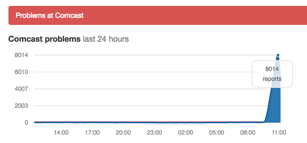 Down Detector is also showing a similar spike in reports for Level 3, one of the Tier 1 or “backhaul” providers. If they’re having issues, it’ll ripple out to many other ISPs, including Comcast.