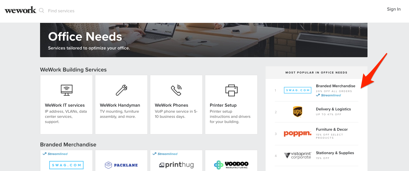 Swag currently has about 1,000 customers, including the likes of Facebook, Evernote, WeWork and Waze. With WeWork, Swag is integrated into the co-working space’s app for services, and is currently the No. 1 service for office needs.