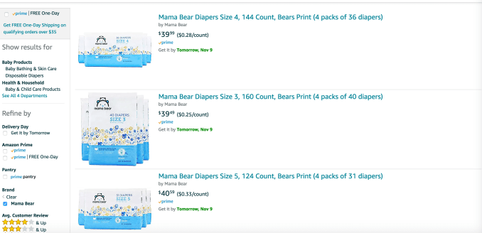 For Amazon, the addition of its own diapers and other private labels will have a bottom line impact, due to their increased margins. Plus, in some cases, the labels are used to drive customers to subscribe to Prime, as the brands themselves are Prime-only. So far that’s been the case for Mama Bear products, but the diapers aren’t yet labeled this way. However, that could be because they’re still in invite mode.