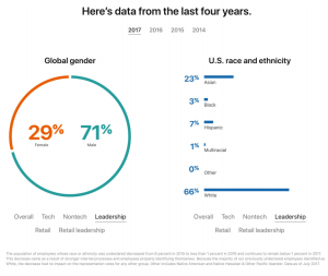 As I mentioned, this is the first report under Smith’s leadership. Smith previously served as head of worldwide human resources at Apple for three years, but had been involved in diversity programs at Apple for years.