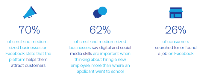 If you’re looking for a job, we’ll provide training to help you improve your digital and social media skills. According to the research, 62% percent of US small businesses using Facebook said having digital or social media skills is an important factor in their hiring decisions — even more important than where a candidate went to school.