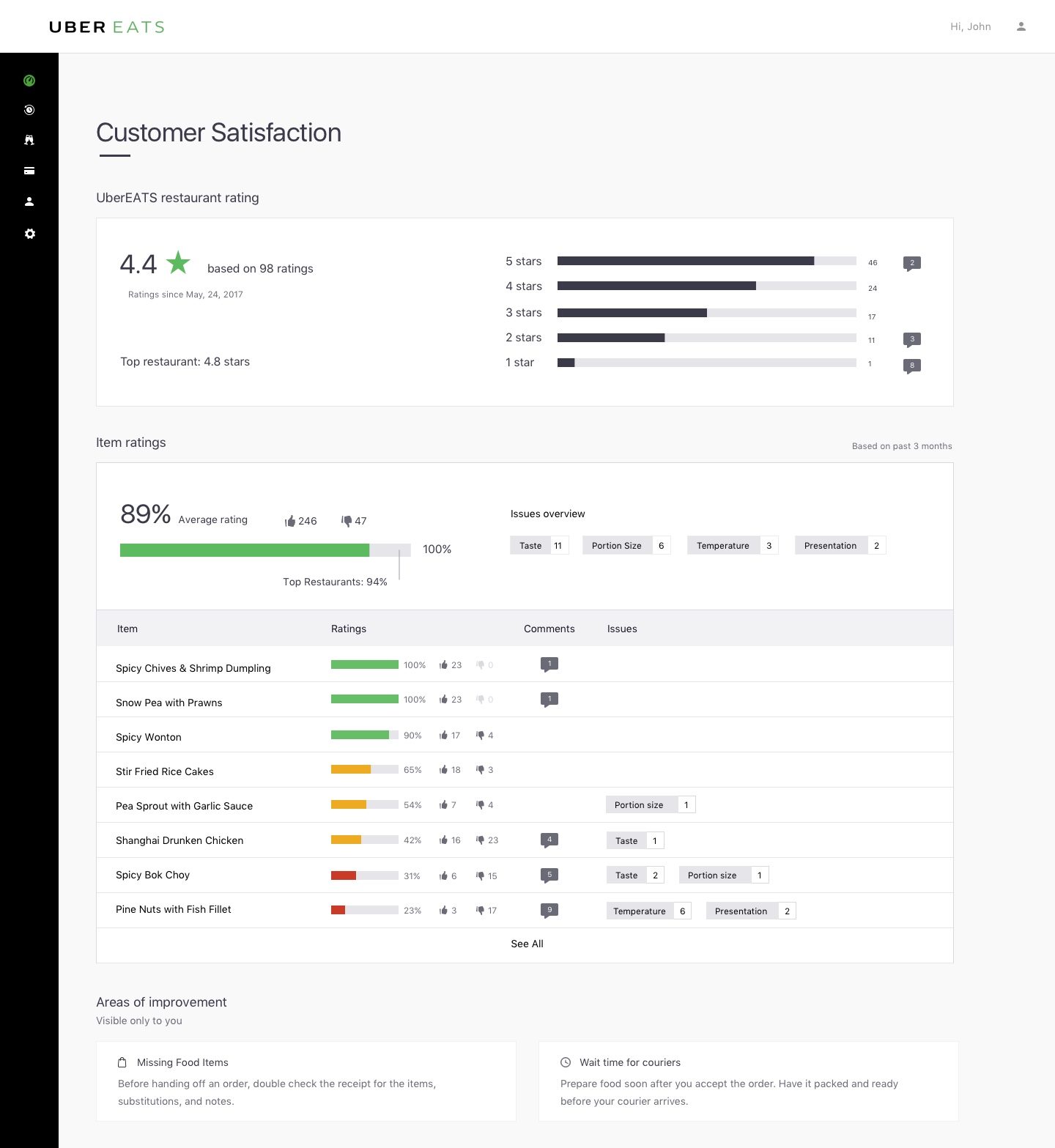 Unlike Uber’s rating system for drivers, there is no particular rating restaurants need to maintain in order to remain on the platform. However, restaurants do need to meet certain standards around quality, inappropriate behavior, not complying with food regulations and other elements laid out in Uber’s community guidelines.