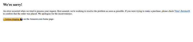 Oddly, when we tried to place an pre-order for the Echo Spot ourselves today, the order would not go through at all. Whether added to the cart or ordered via 1-Click, we were shown an error page instead of an order confirmation.