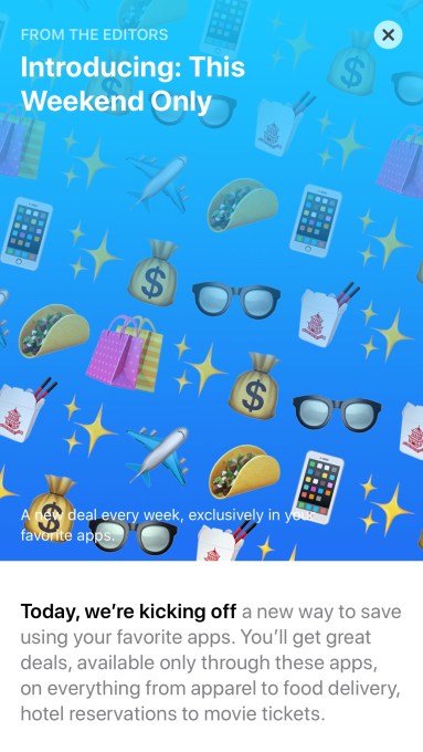 With the introduction of iOS 11, Apple redesigned the App Store with a heavier focus on editorial content, including articles, interviews, how-to’s, lists and other round-ups with app recommendations. Now, it’s adding another feature, as well, called “This Weekend Only.” The new section lists deals that can be found inside apps, as opposed to discounts on downloads of apps themselves.