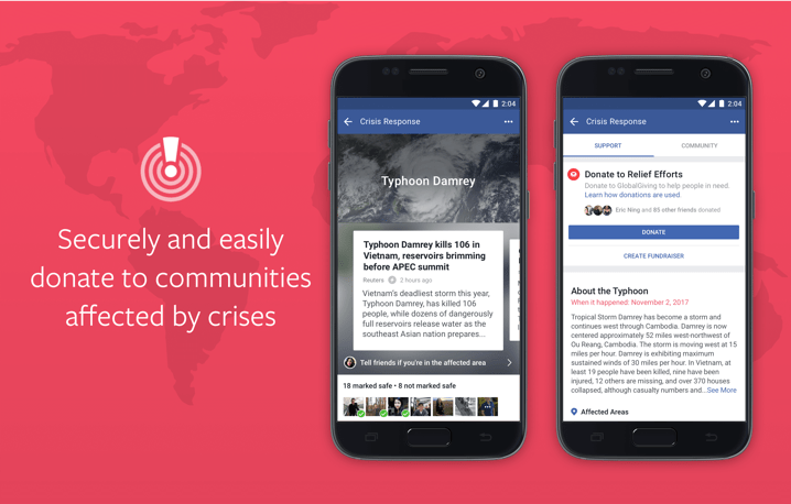 Facebook is doing this in partnership with GlobalGiving, a non-profit organization that collects and sends fund to local organizations that are able to help during times of disaster. Facebook’s Safety Check had already integrated fundraisers back in June, but those have a 6.9 percent plus $.30 fee that goes to payment processing, fundraiser vetting, and security and fraud protection.