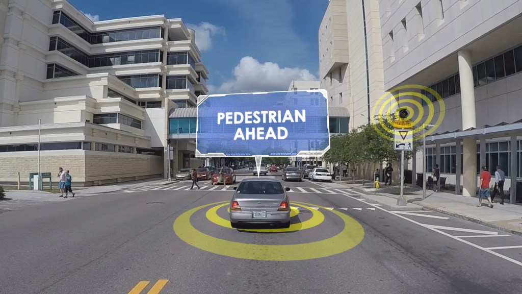 “The whole idea is to have drivers aware of their environment — when a light is about to change, or if there’s congestion ahead, or if there’s a pedestrian in the crosswalk,” explained Vic Bhide, Chief Traffic Management Engineer for the City of Tampa. “This pilot is about vehicles, about infrastructure, about pedestrians, and eventually, about bicycles as well,” he said.