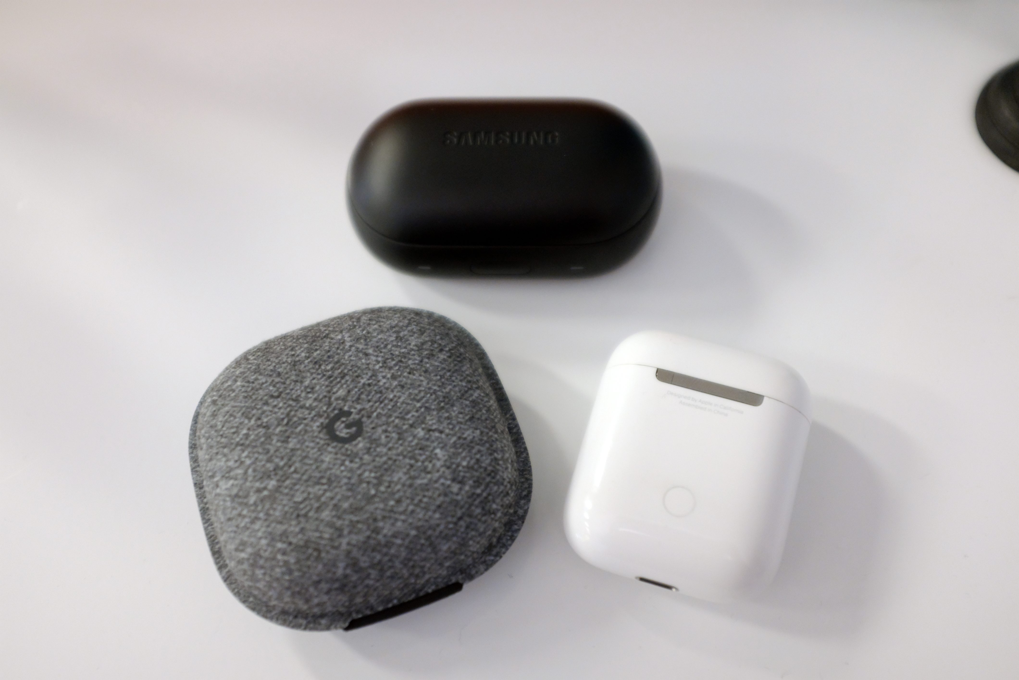 The Pixel Buds’ case is as good an indication as any of a company looking to put a unique spin on the familiar. If the AirPods case looks like a Glide dental floss dispenser, Google’s is something approaching a fast food hamburger container. It’s a clamshell made from a much softer material than Apple or Samsung’s offerings. It’s also noticeably larger. It’ll fit in your pocket just fine, but it’s going to leave a much bigger bulge.