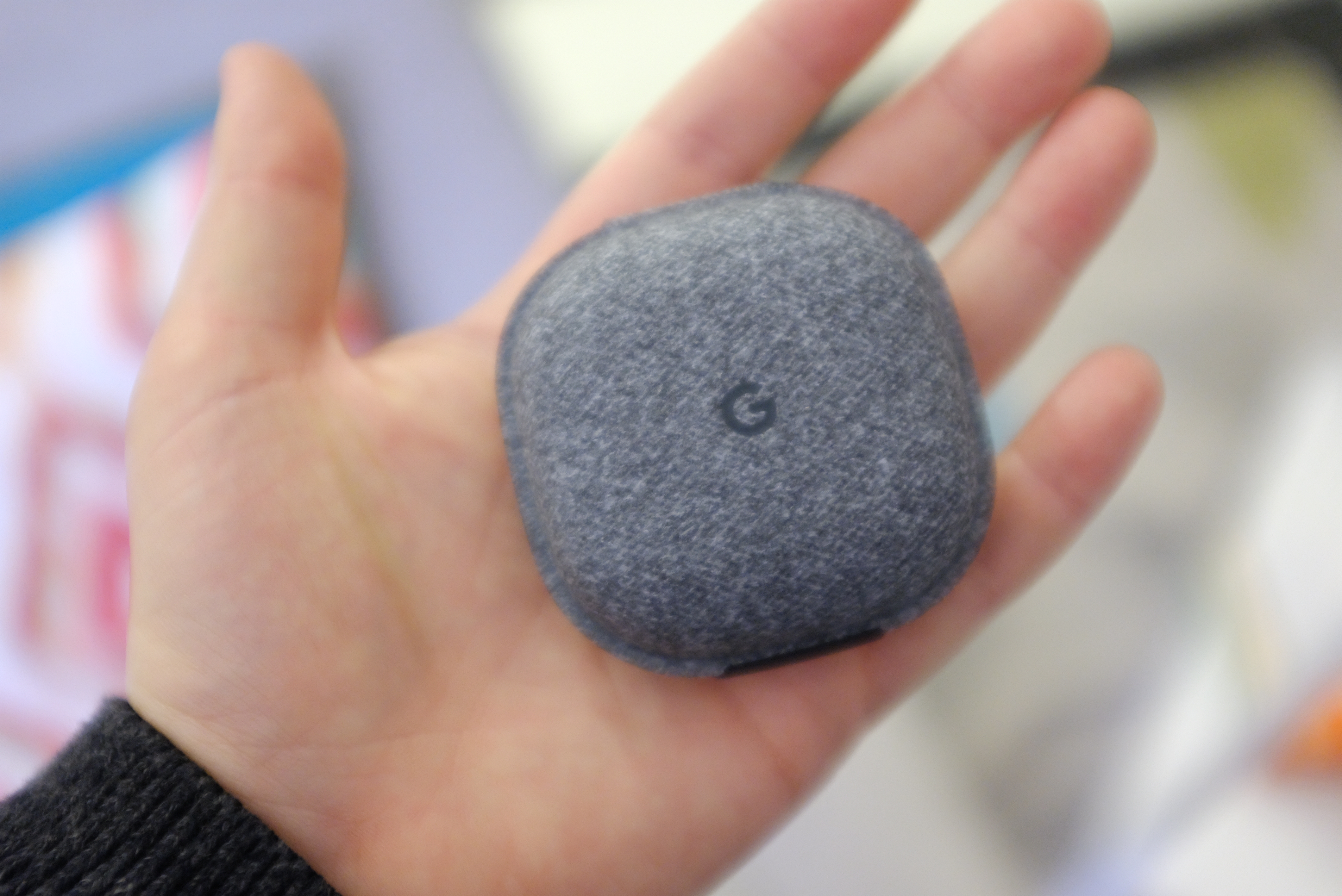 The exterior is covered in gray fabric — a nice touch that keeps it aesthetically consistent with the rest of the Google Home line. It’s also nice and soft to the touch, unlike the cold plastic of the competition. Still, it’s hard to shake the feeling that the case is a bit flimsy. It’s easy to imagine things getting worn out over time or the thin plastic hinge that holds the top and bottom together tearing after repeated opening and closing.
