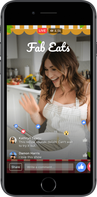 Graph frames let makers add a pretty border to their videos for a more immersive feel. And custom reactions let creators replace one of the six default “haha,” “‘angry” or “wow” alternatives to the standard “Like” with a graphic of their choice. That could tie in with the theme of their broadcast or personality. For example, Simo says feel-good video star Markian could add an especially toothy smile reaction to entertain his fan club group on Facebook, the #SmileSquad.