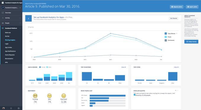 The Sharing Insights tab lived inside Facebook Analytics and has previously been a pretty significant way for Page admins to get their hands on some of the more broad trends regarding demographics of users that were sharing their content.
