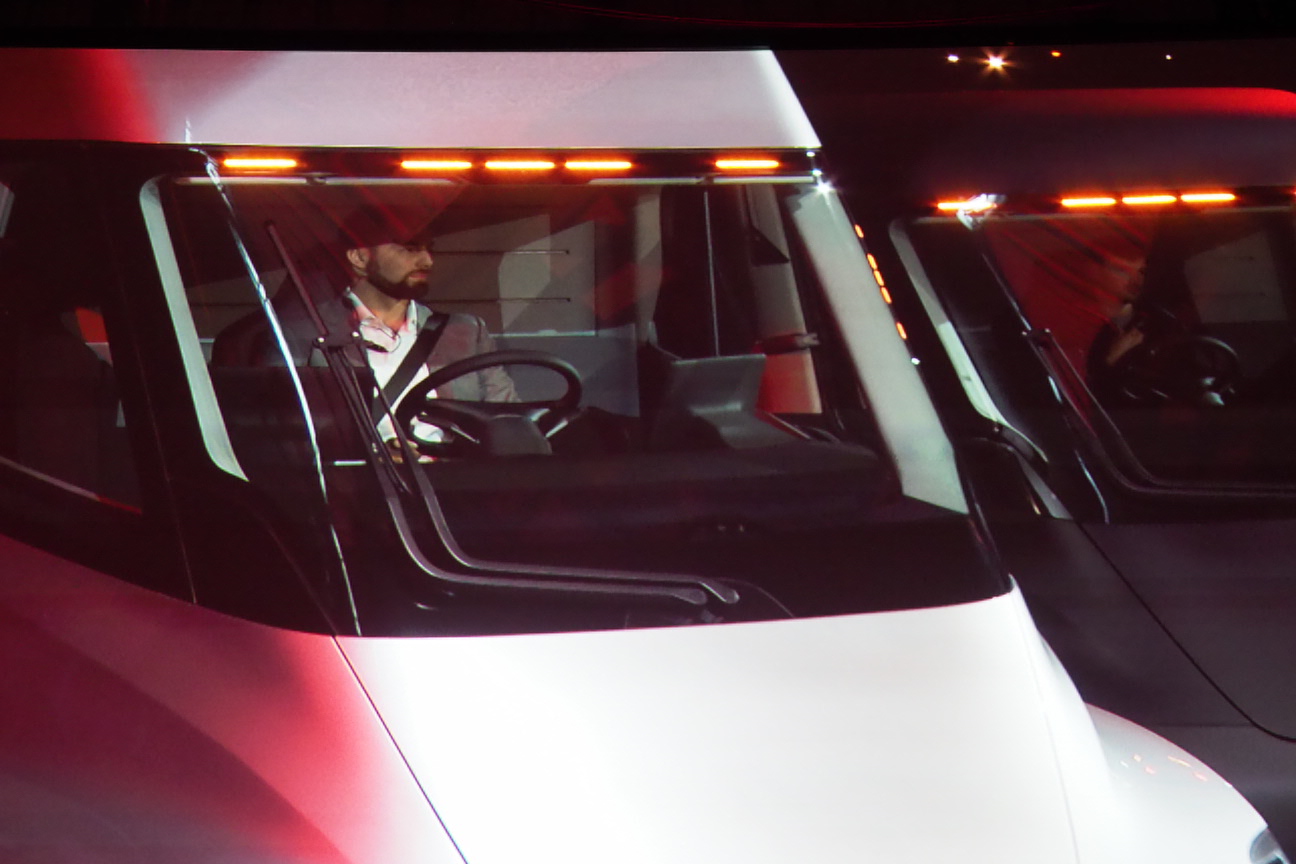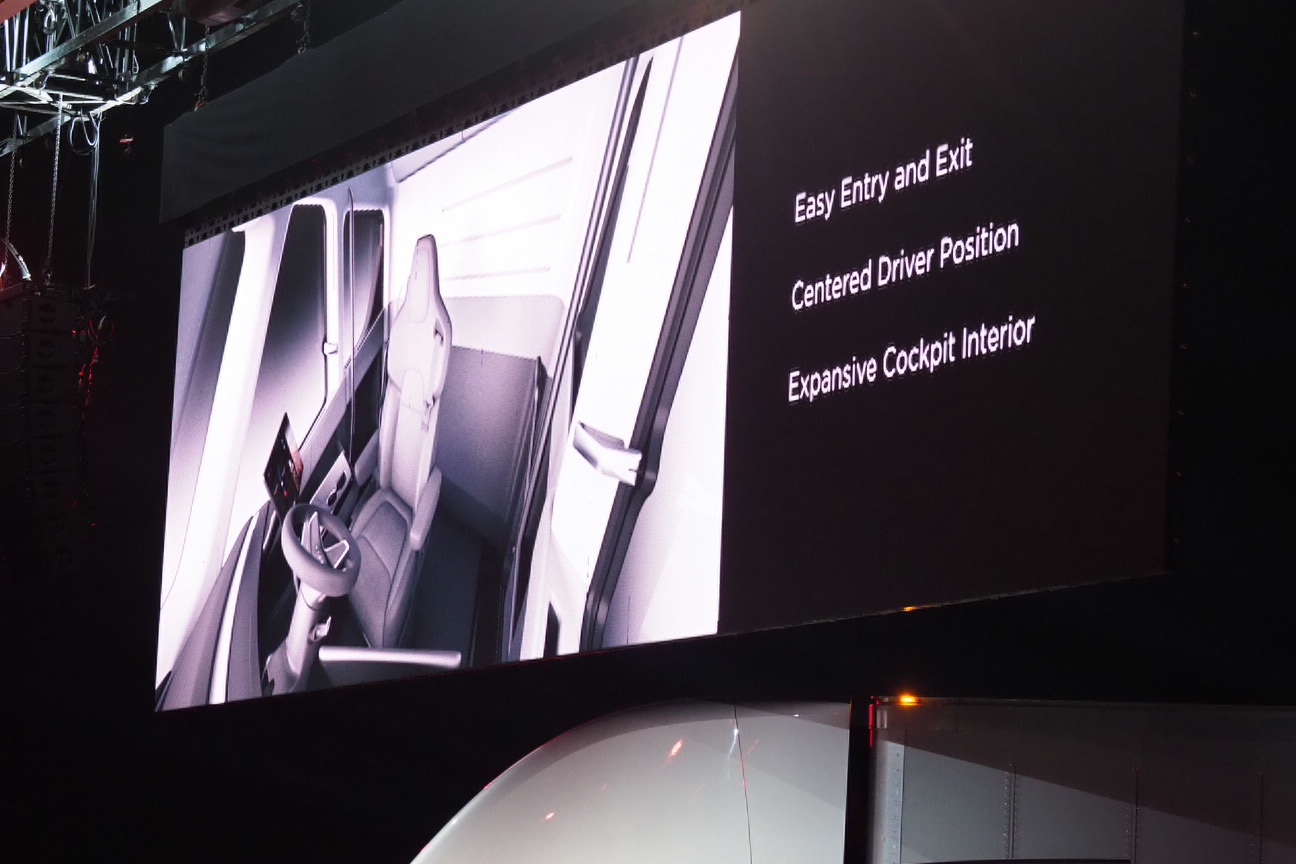 The cab also featured plenty of storage, in the doors, above the rear wall (like airplane overheads) and with cupholders. Tesla says it’s designed to be convenient for the use habits of existing drivers, who tend to bring a lot of stuff on the road.