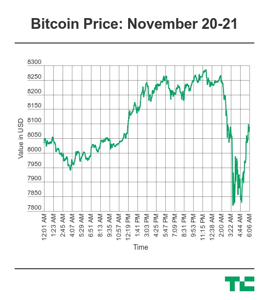 Bitcoin’s value took a dent when the news came out, but it quickly recovered. At the time of writing, bitcoin’s value stood at $8,126.71, down 1.35 percent over 24 hours, according to Coindesk.