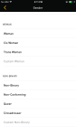 Grindr’s new identity section lets users fill out their own gender identity or pick from a list that includes “trans man,” “woman,” “cis man,” “non-binary,” “non-conforming” and “queer.” Users can also select or write in what pronouns they prefer to use.