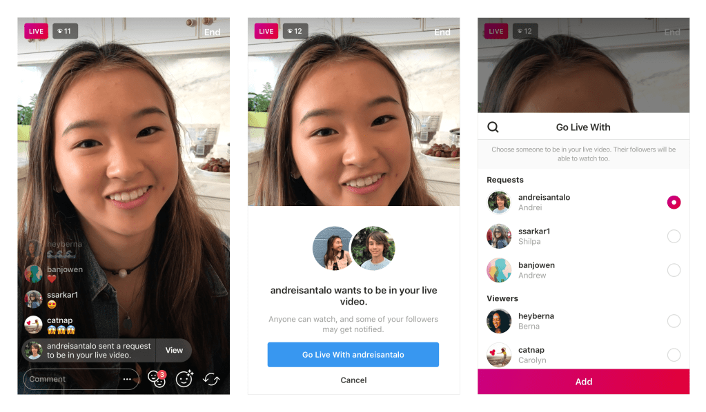 Instagram had already let anyone streaming live invite a friend to join them, but by adding a request feature the possibilities for collaboration are greatly expanded.