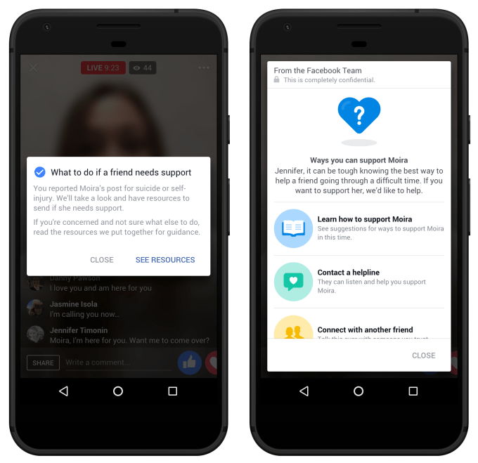 Facebook also will use AI to prioritize particularly risky or urgent user reports so they’re more quickly addressed by moderators, and tools to instantly surface local language resources and first-responder contact info. It’s also dedicating more moderators to suicide prevention, training them to deal with the cases 24/7, and now has 80 local partners like Save.org, National Suicide Prevention Lifeline and Forefront from which to provide resources to at-risk users and their networks.