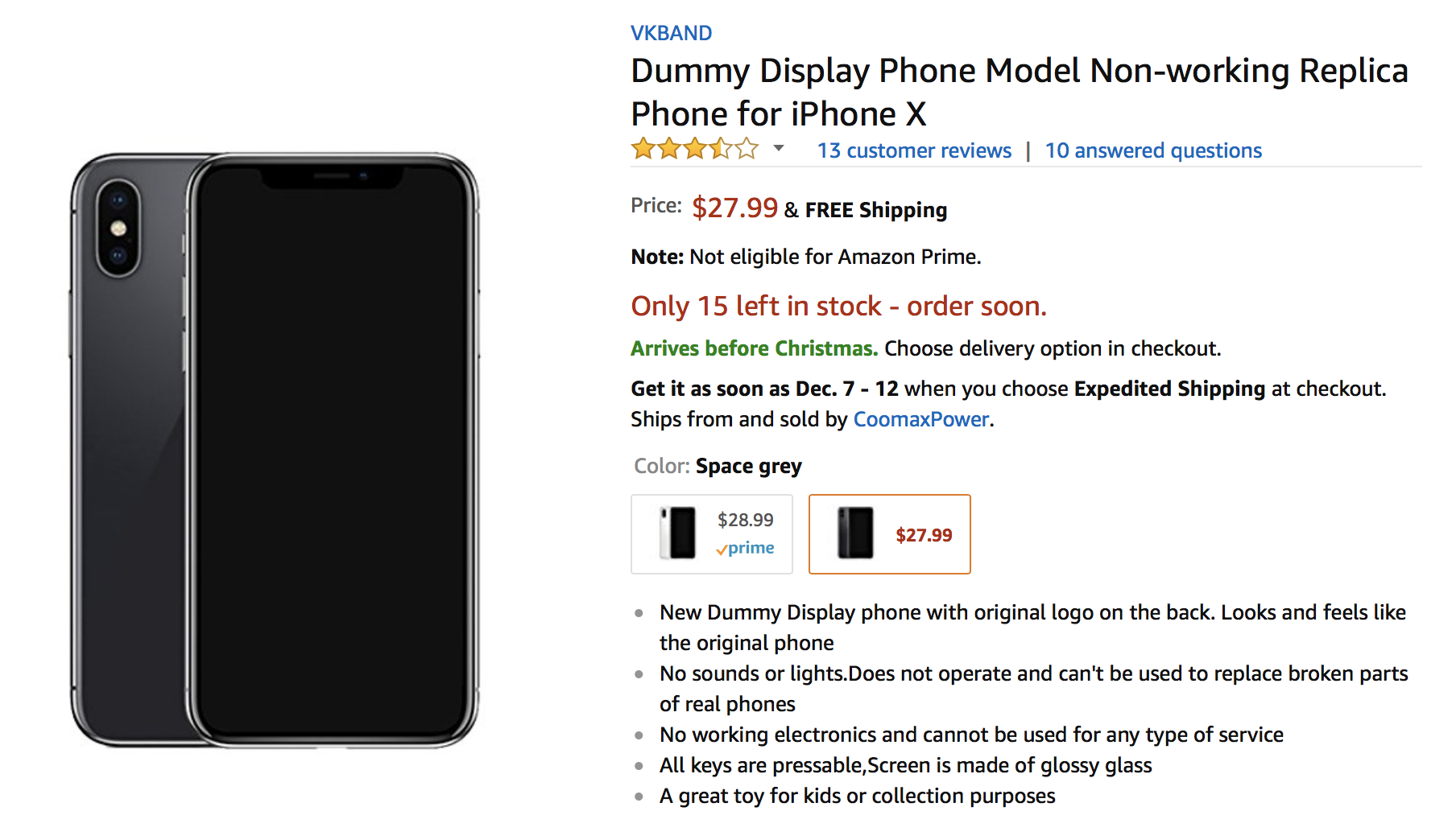 “Since apple announced in September but the iPhone X didn’t drop till November This gave us a lot of time to look at the drawings and photos of the phone, but I really wanted one in the shop to test,” he said. “I had looked around on the typical places. Alibaba and AliExpress have shady dummy phones, in bulk, but it’s always a crapshoot. I thought, hey, Amazon has everything. Literally. Maybe not for the best price, but it was worth a shot. So I did a simple search for ‘dummy iPhone’ and found this.”