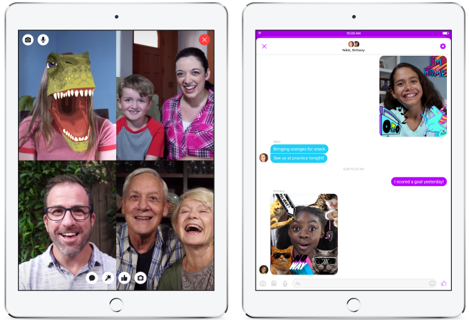Special proactive detection safety filters prevent children from sharing nudity, sexual content or violence, while a dedicated support team will respond quickly to reported or flagged content. Facebook even manually sifted Giphy to build a kid-friendly version of the GIF-sharing engine. And with childish augmented reality masks and stickers, video calls with grandma could be a lot more fun and a lot less silent or awkward.