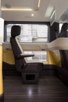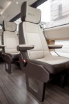 This six-seater vehicle goes above and beyond the typical current electric vehicle, with individual seats in place of bench, and with USB ports and dimmable interior lighting for individual passenger comfort and convenience. There’s built-in onboard Wi-fi, and luggage storage provided not in the rear as you might expect, but up front next to the driver to provide more leg and passenger room in the rear compartment.