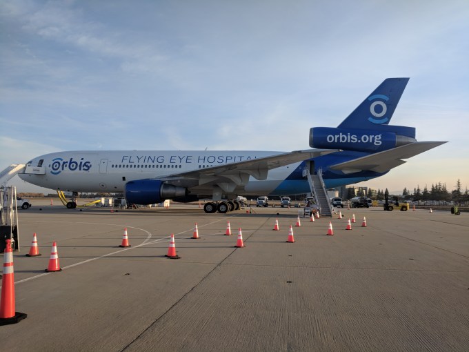 Since this is TechCrunch let’s talk about its technology before we dig deeper into its mission. One of the most technically amazing things about the Flying Eye is that it is an entirely self-contained hospital: its systems, which run purely on jet-fuel-powered generators, include its own medical gases, its own clean room, its own water purifiers, its surgical equipment, etc., including extremely sensitive equipment (again, this is eye surgery we’re talking about) which has to be stowed such that can survive serious turbulence or bumpy landings on difficult runways without requiring major maintenance.