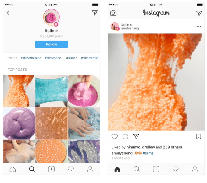 Instagram has always been a social network where you follow friends and creators, but today it’s evolving with a new way to follow hashtags so you see top posts and Stories about a topic on your home page. Rather than having to dig this content out of search or the Explore tab, you can see the best #Slime videos or #FloralNails tutorials no matter who posts them.
