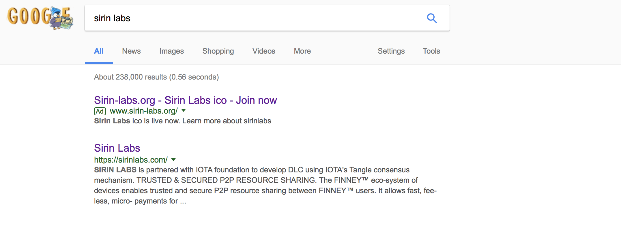 As an aside, when searching for the website I found a copycat site that also claimed to be the Sirin ICO – a problem that plagues countless token sales. In short, had anyone clicked the top link they would have sent their money into a black hole.