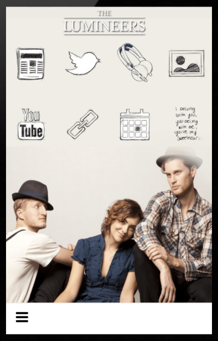 Above: The original version of the Official Lumineers app, built by AppMakr