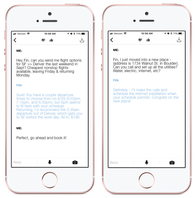While it’s easy to imagine Fin as merely a first-world luxury for the lazy, and it’s great at that, it’s also a productivity tool that can let people achieve more of what only they can do. Kortina talks about Fin as a way to “instantly offload” chores.