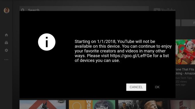 That led Google this month to declare that it would pull YouTube entirely from Amazon’s hardware lineup, including Fire TV. The player was yanked immediately from Echo Show, but Fire TV owners were told that the app would work until January 1, 2018.