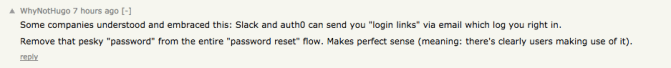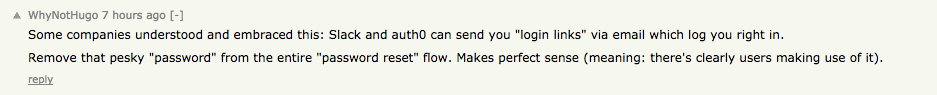 In a discussion of the getting locked out of Google story on Hacker News, one commenter, WhyNotHugo, suggested emailing log-in links that bypassed the need for a password altogether: