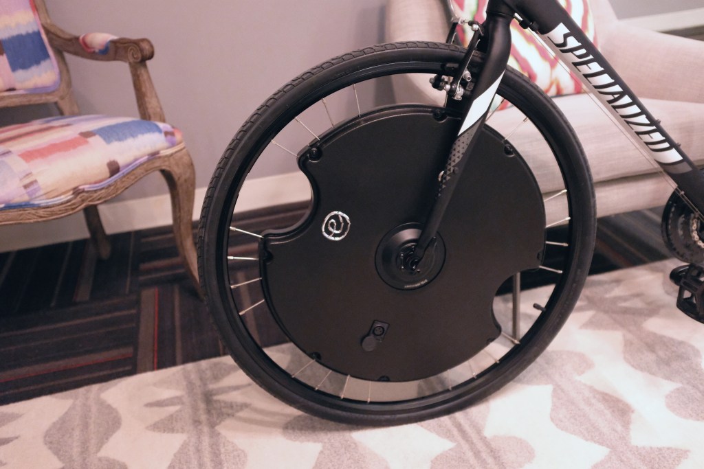 The Electron wheel works like most other front-wheel-powered bicycle add-ons. Installation should take less than a minute according to the company, snapping the wheel onto the front spokes. Then you secure a sensor to one of the pedals with a Velcro strap. That’s pretty much it.