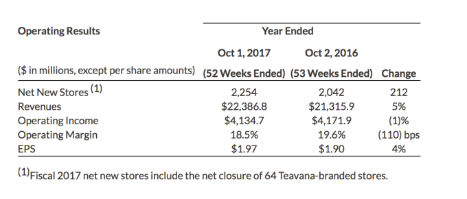 Here’s a look at Starbucks’ operating margins for the past fiscal year, for example:
