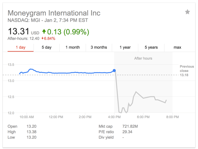 MoneyGram’s share price dropped by around 10 percent to $12.02 on the news, before recovering to around $12.40 in out-of-hours trading at the time of writing.